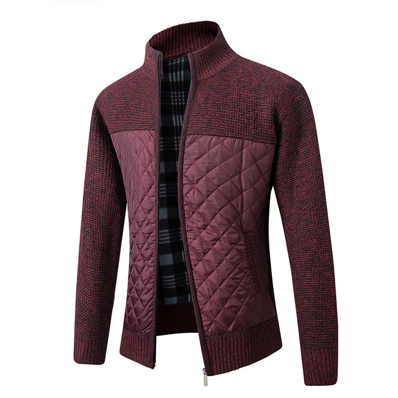 جاكيت محبوك سميك للرجال من الصوف بالألوان المتباينة